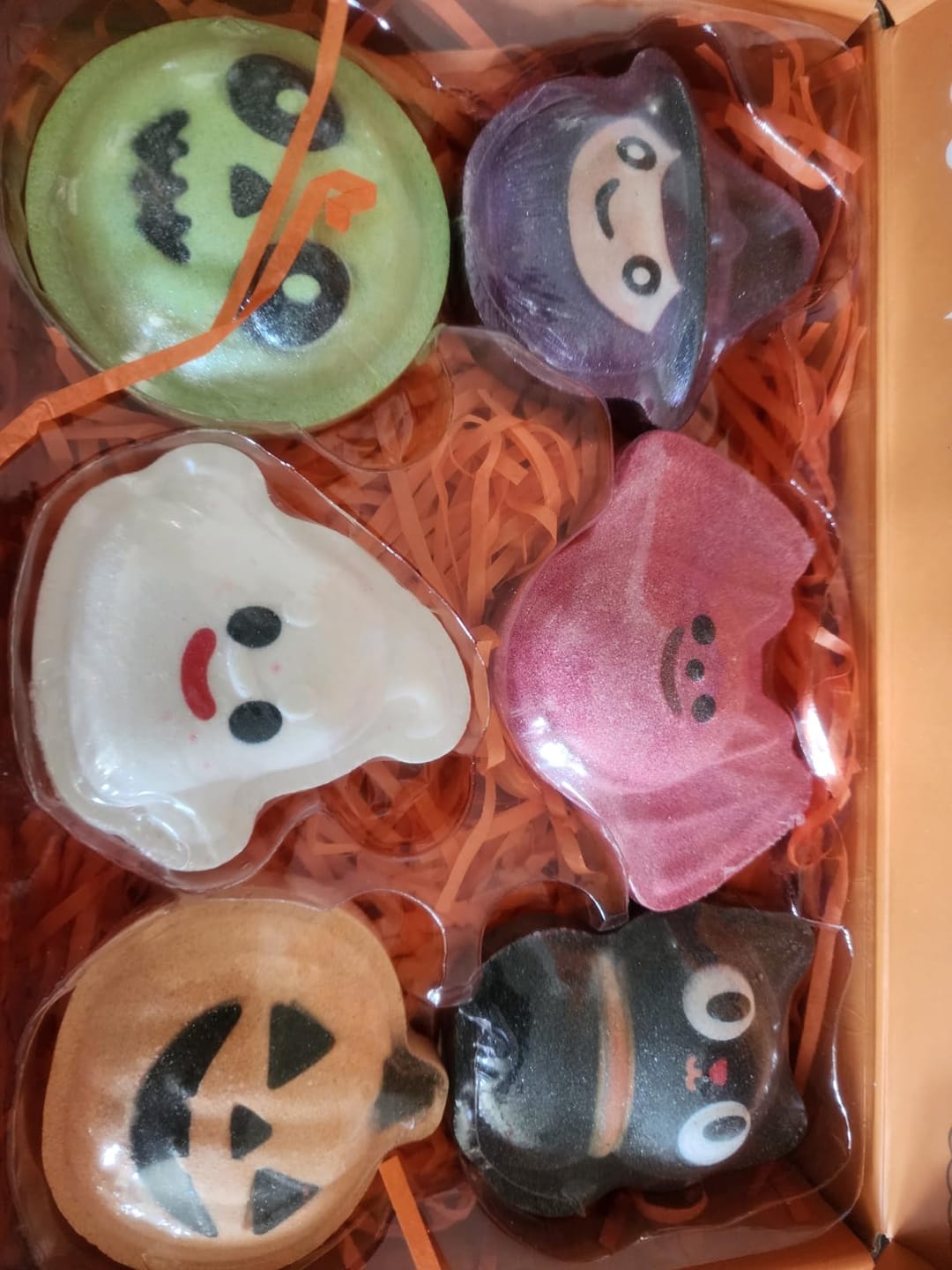 This festive set includes 6 themed bath bombs (Witch, Bat, Black Cat, Skull, Ghost & Pumpkin) packed in a gift-ready box — no wrapping needed!